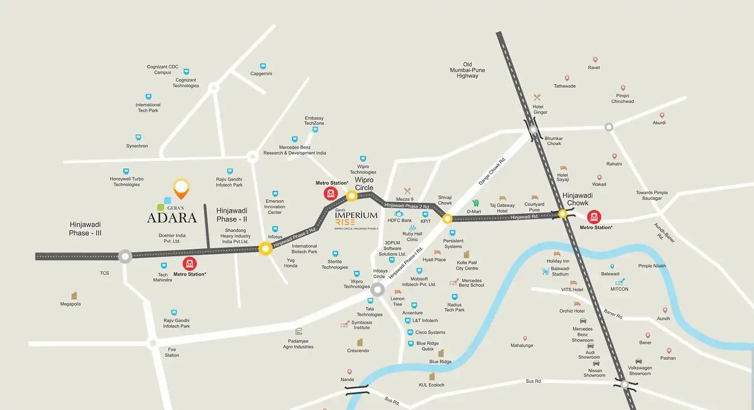 Being stuck in the daily grind can be exasperating. The toil and the commute often outweigh its perks. How about a home that lets you unwind indoors! Being at Hinjawadi, at Gera’s Adara, everything will be in proximity such as the Rajiv Gandhi IT Park, educational institutes, premium hotels, shopping malls, avenues for recreation and multiplexes. So, enjoy as much in the conveniently located world outside, as you would inside your two worlds.